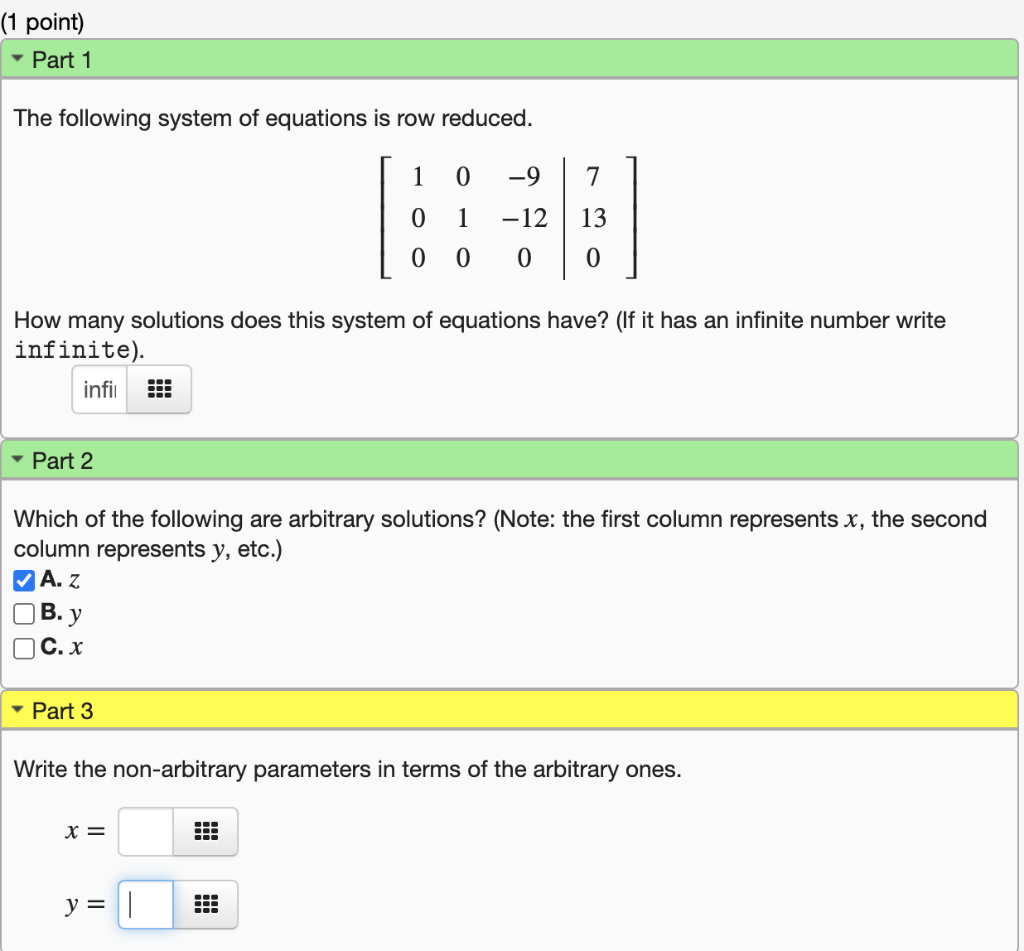 Solved Point Part The Following System Equations Rovreduceod 12 How Many Solutions Does This System Equations Have Lf It Has An Infinite Number Write Infinite Infi Part 2 Which Of The Following Are