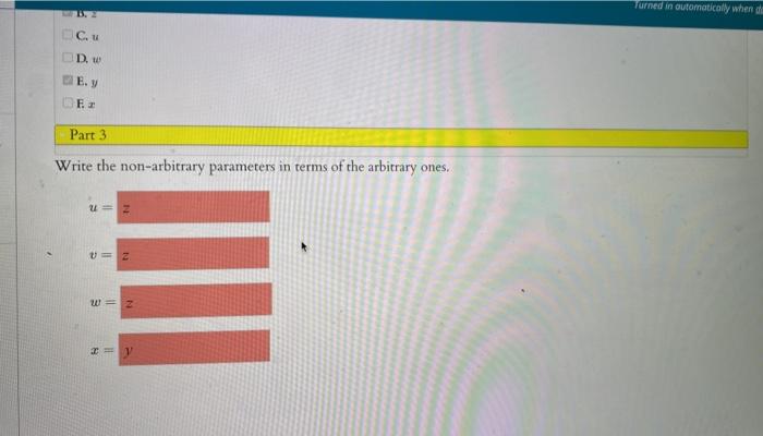 Solved Write The Non Arbitrary Parameters Terms Oithe Arbitrary Ones 2 Of The Inilnlte 1 How Many Solutions Does 1 Ollowing System Arbitrary Thls System Ot Equatlons Of Equatlons Have Solutions Note Ihe